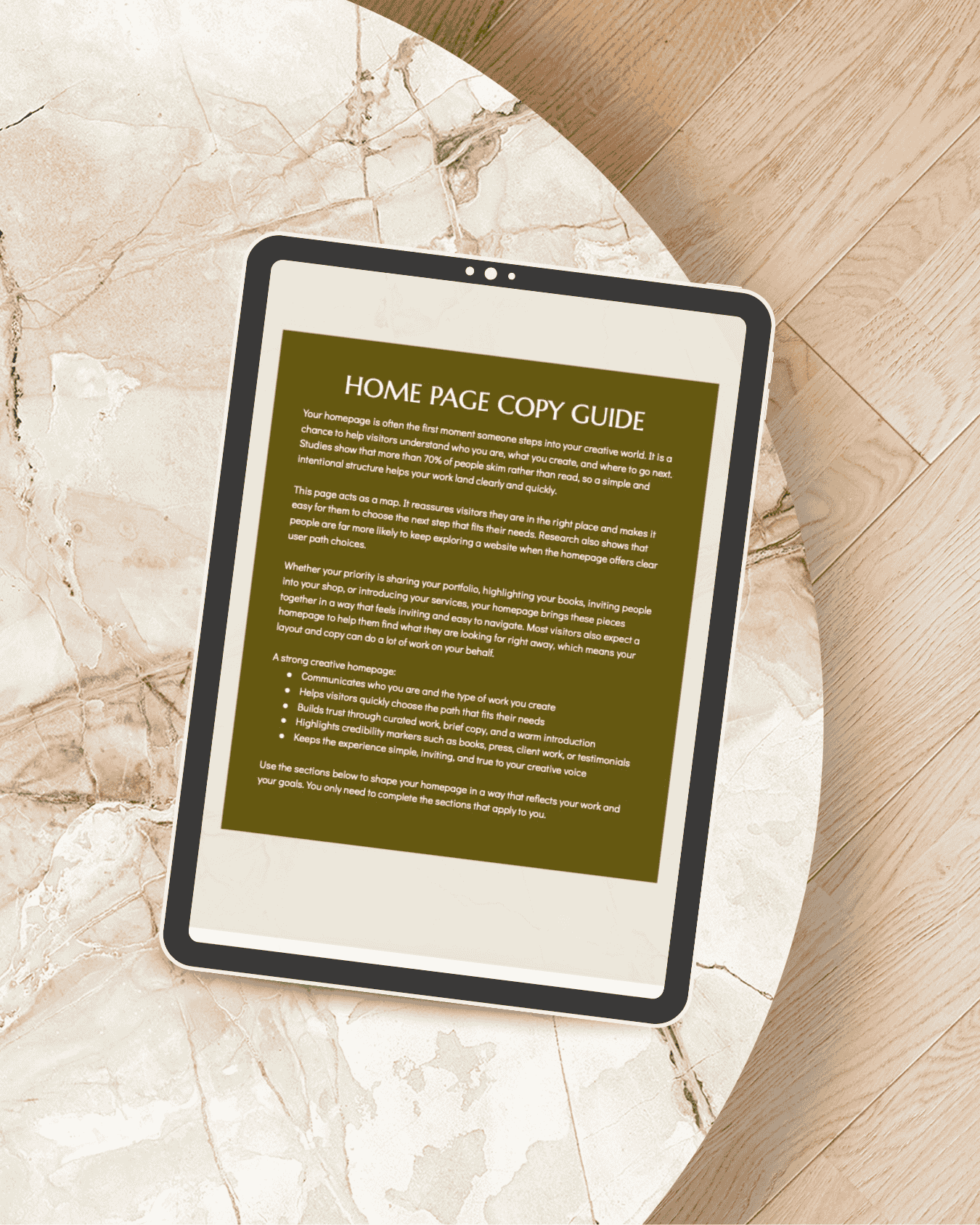 Within your Notion portal, you'll also receive comprehensive copywriting guides. Each guide is broken down section by section and walks you through exactly what to write and why. You'll know what your visitor is thinking and feeling at each point in their journey, what they need to hear next, and how to say it in language that's search-friendly. If you've ever stared at your own website copy wondering where to even begin, these guides will completely change that experience. (And if you'd rather not write it yourself at all, that's what the done-for-you copywriting add-on is for.)
