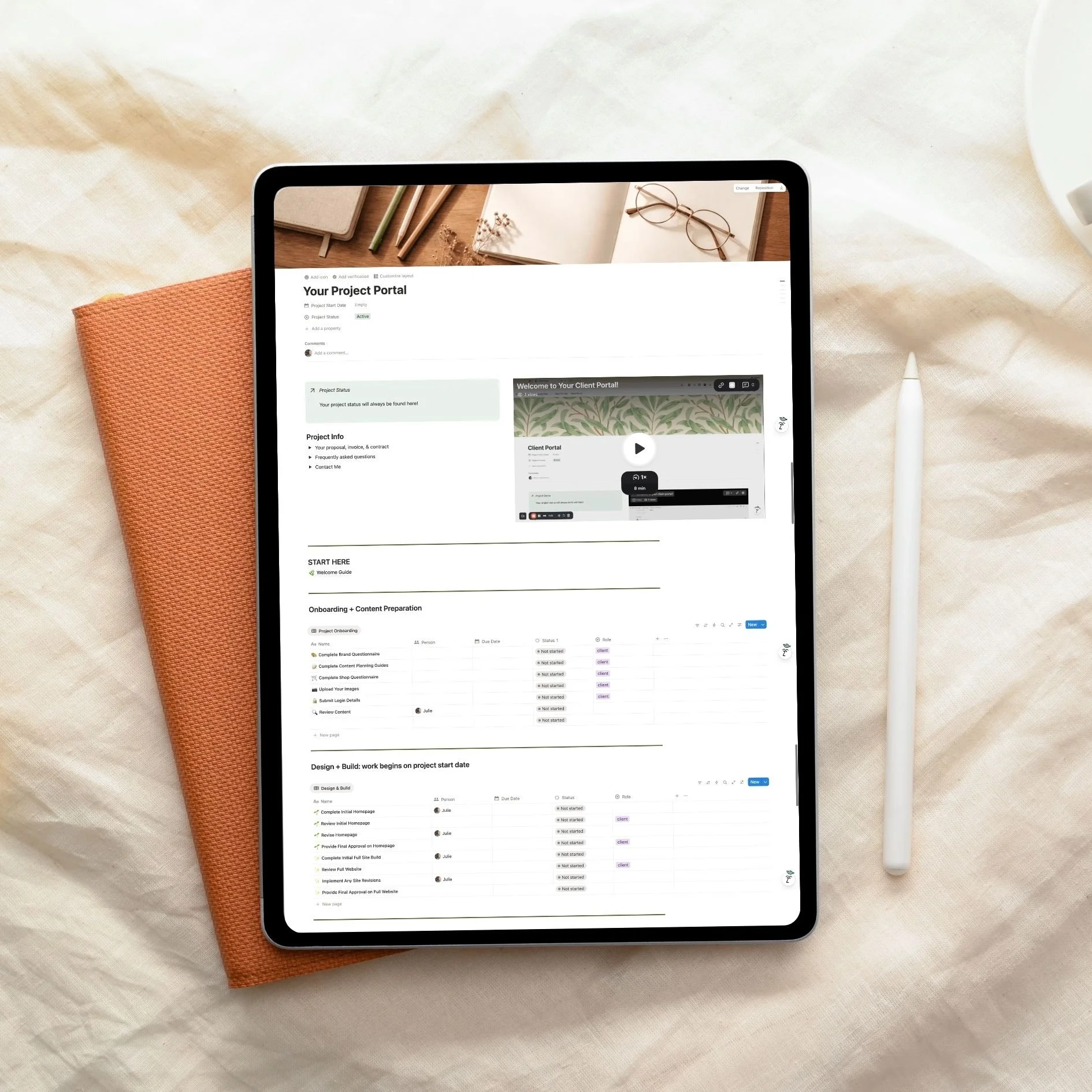A Notion space that holds your timeline, deadlines, guides, and content in one place, so you're never digging through email threads wondering what's next.